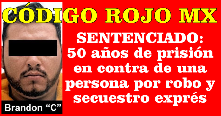 SENTENCIADO: 50 años de prisión en contra de una persona por robo y secuestro exprés