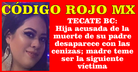 TECATE BC: Hija acusada de la muerte de su padre desaparece con las cenizas; madre teme ser la siguiente víctima