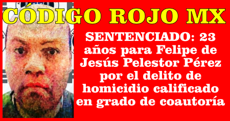 SENTENCIADO: 23 años para Felipe de Jesús Pelestor Pérez por el delito de homicidio calificado en grado de coautoría