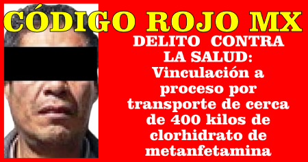 DELITO DE CONTRA LA SALUD: Vinculación a proceso por transporte de cerca de 400 kilos de clorhidrato de metanfetamina
